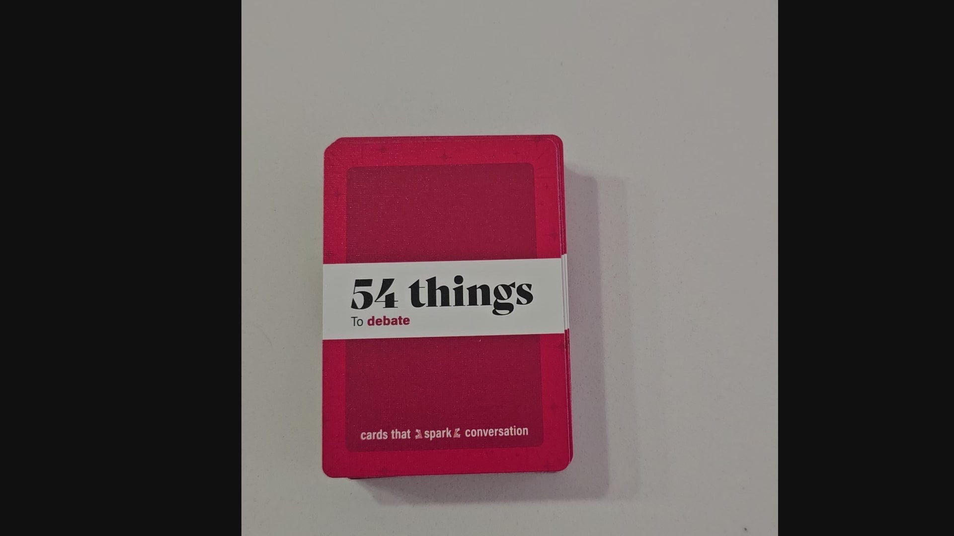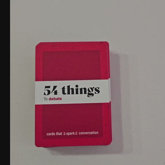 Fuel engaging discussions with 54 Things to Debate, a card deck designed to challenge perspectives, sharpen critical thinking, and encourage lively, thought-provoking debates. Featuring controversial, and brain-teasing questions, this deck is perfect for friendly discussions and heated debates alike... depending on who you are playing with!